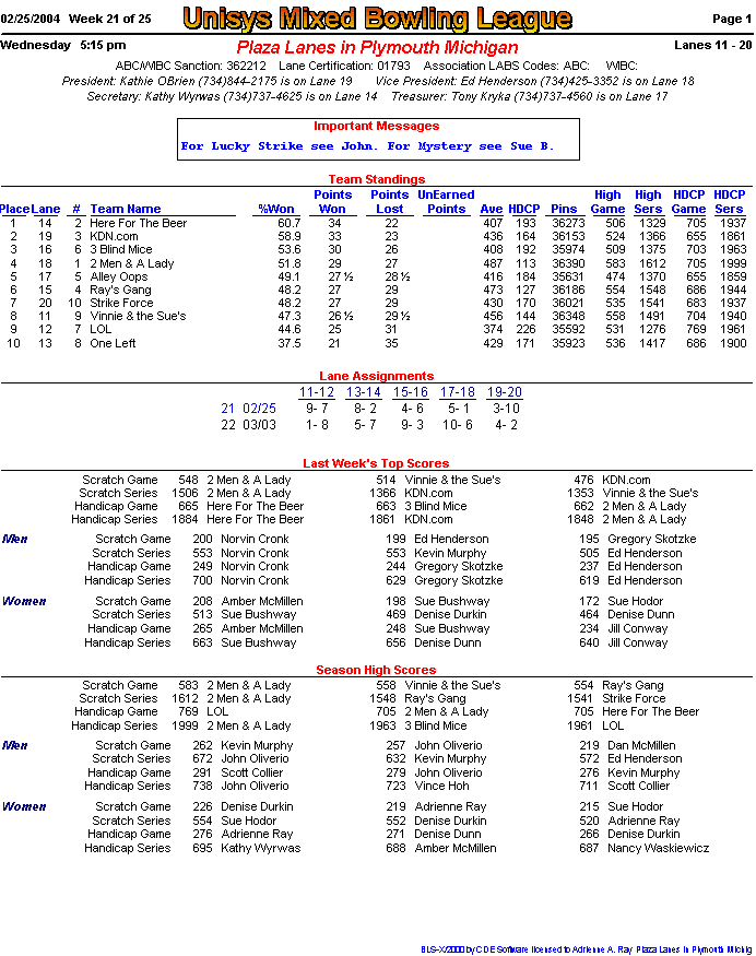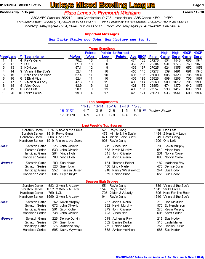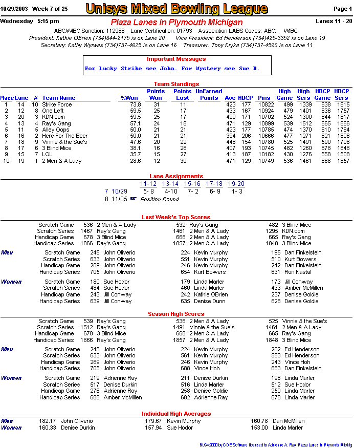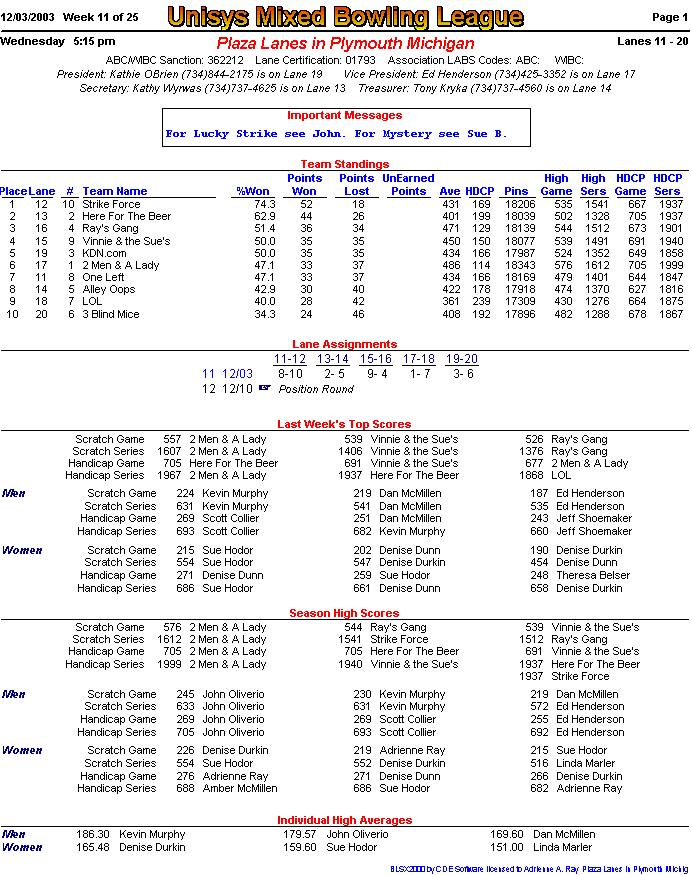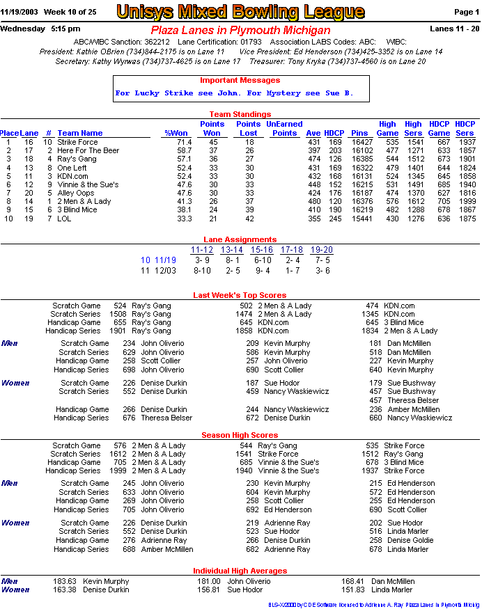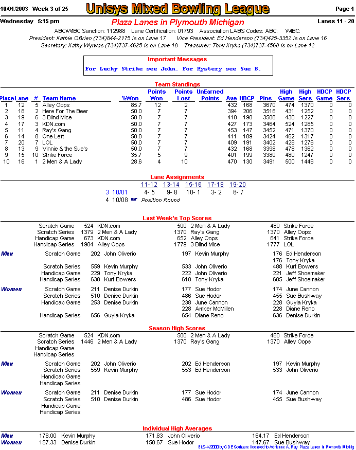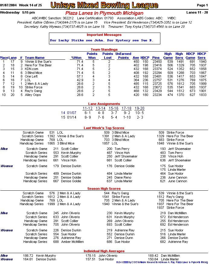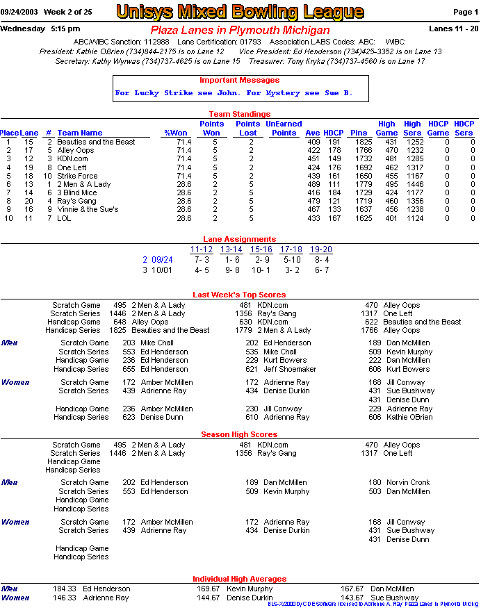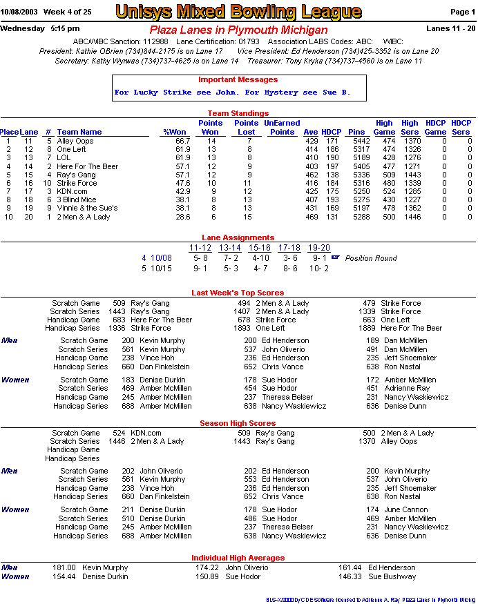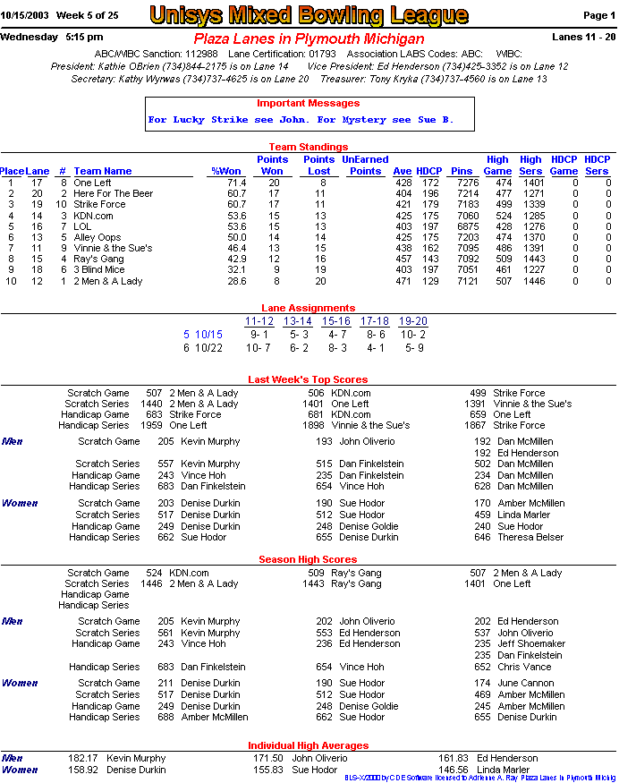 (page 1) -- (page 2) -- (Stats pg1) -- (Stats pg2)Final Standings New page!