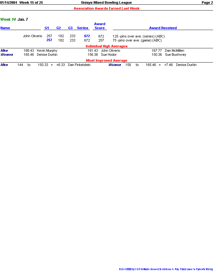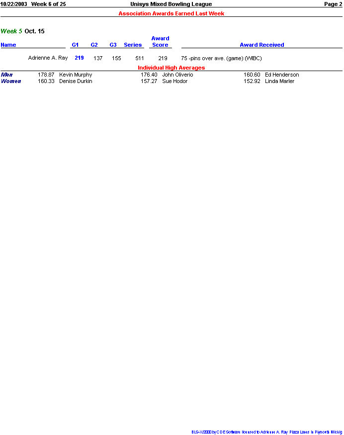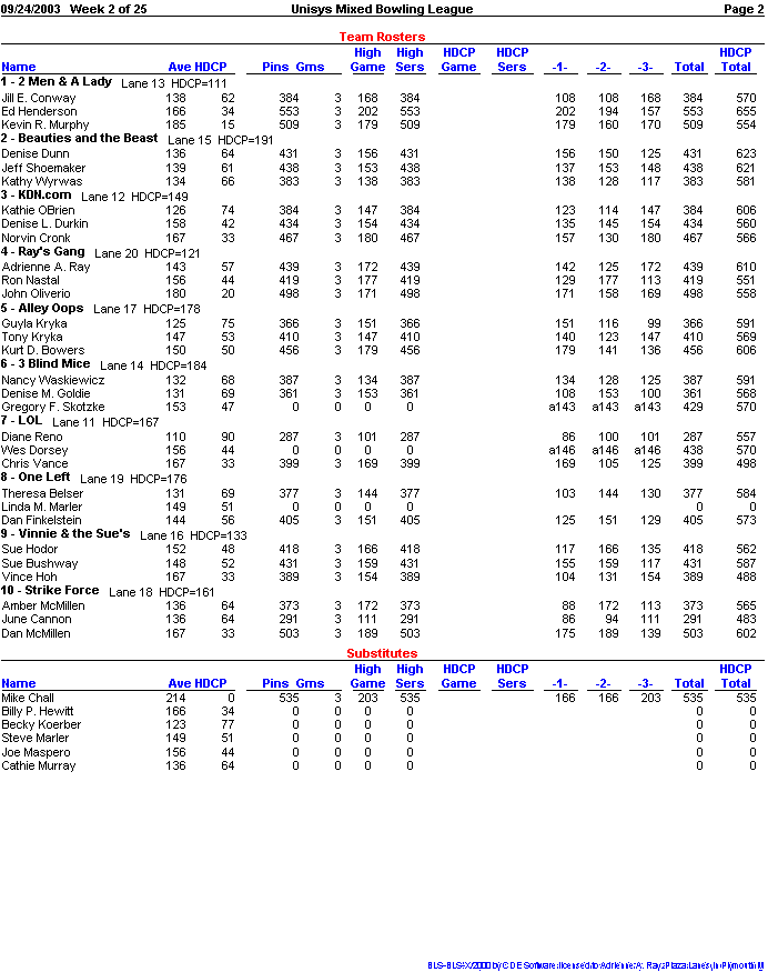 Rolloff between 1st and 2nd half champs. Doubles Tournament for all bowlers.