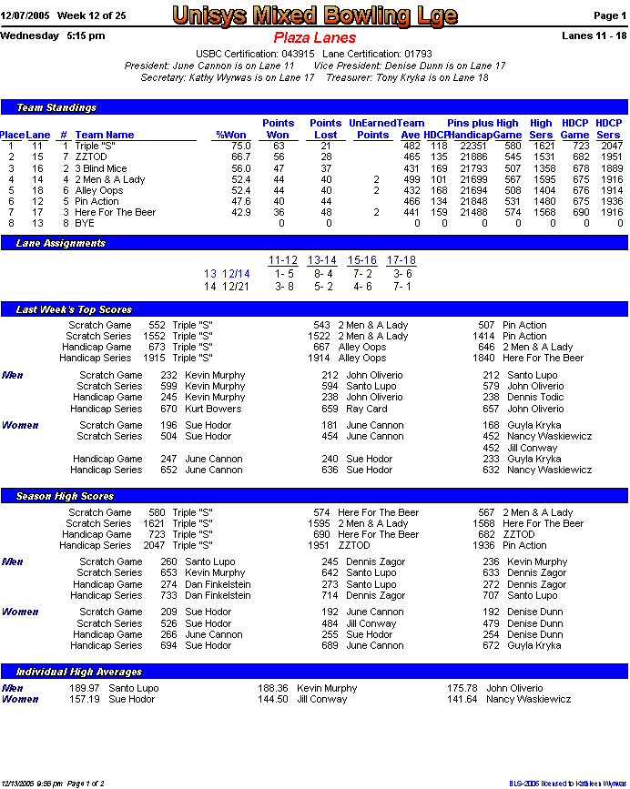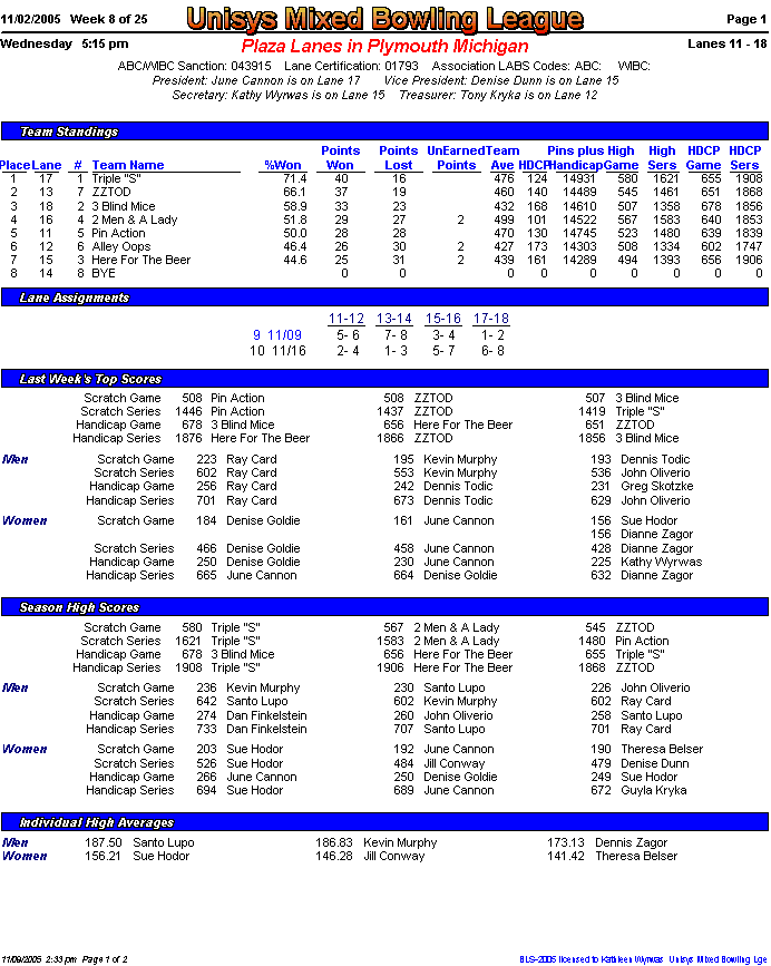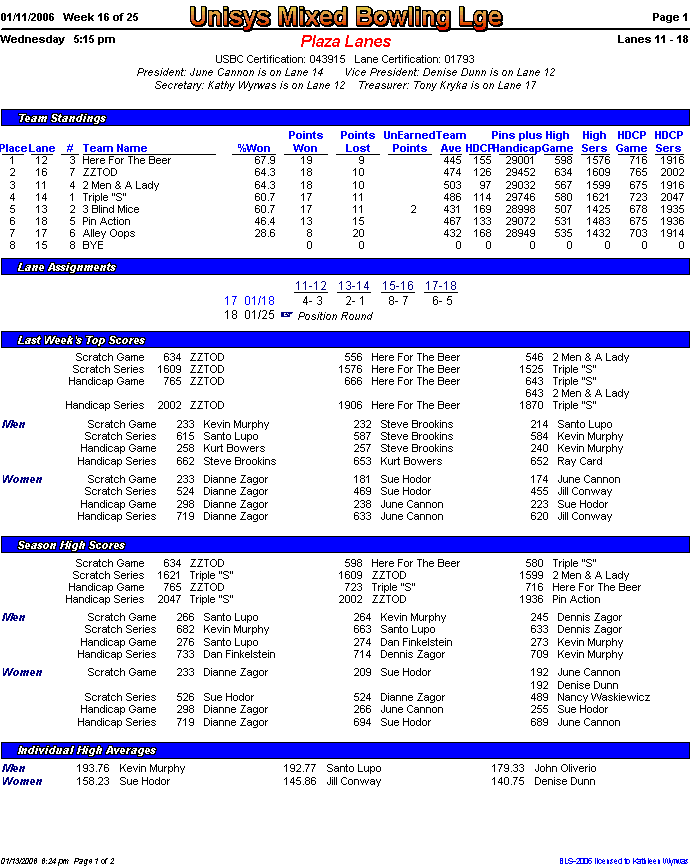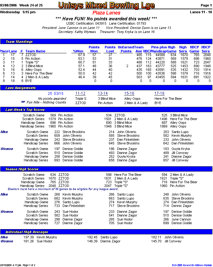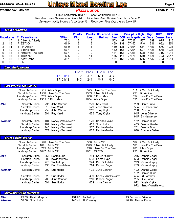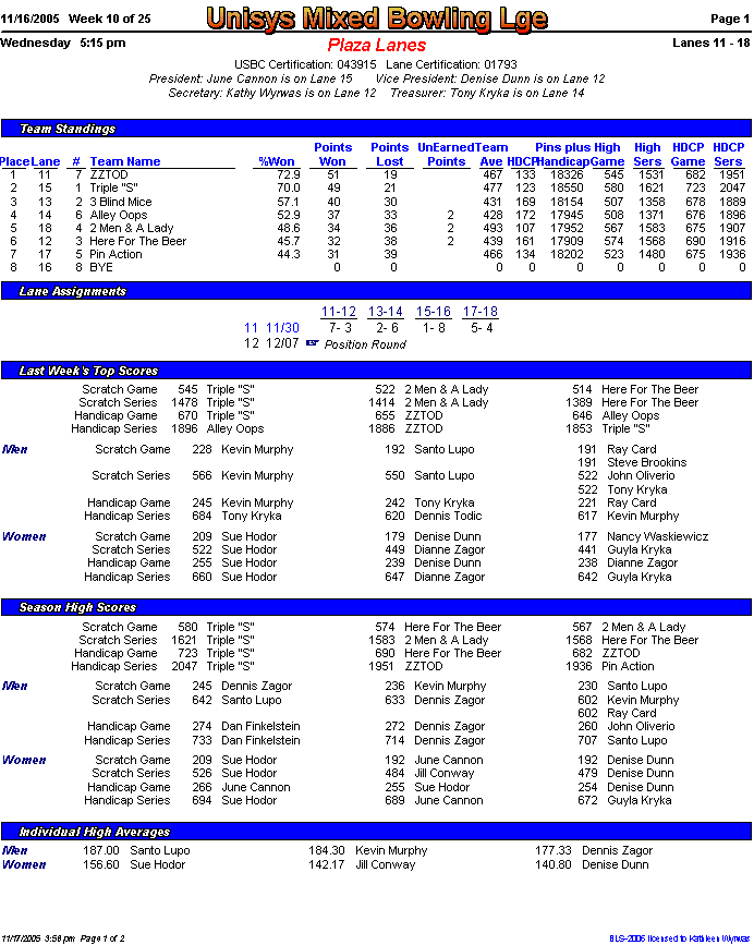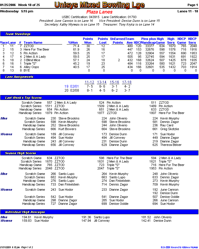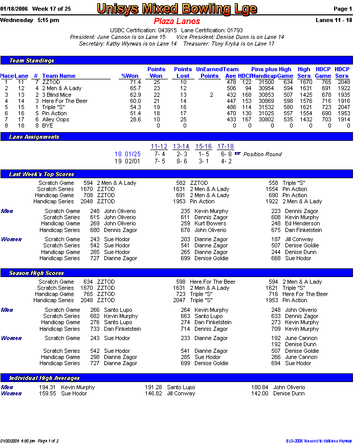 Brackets sheet and lane assignments (PDF file)