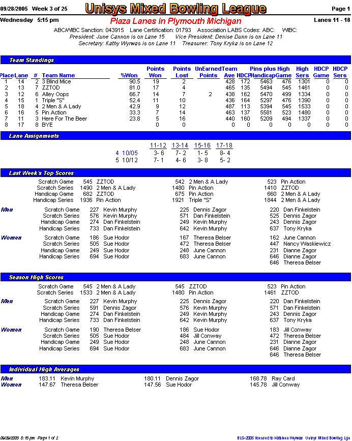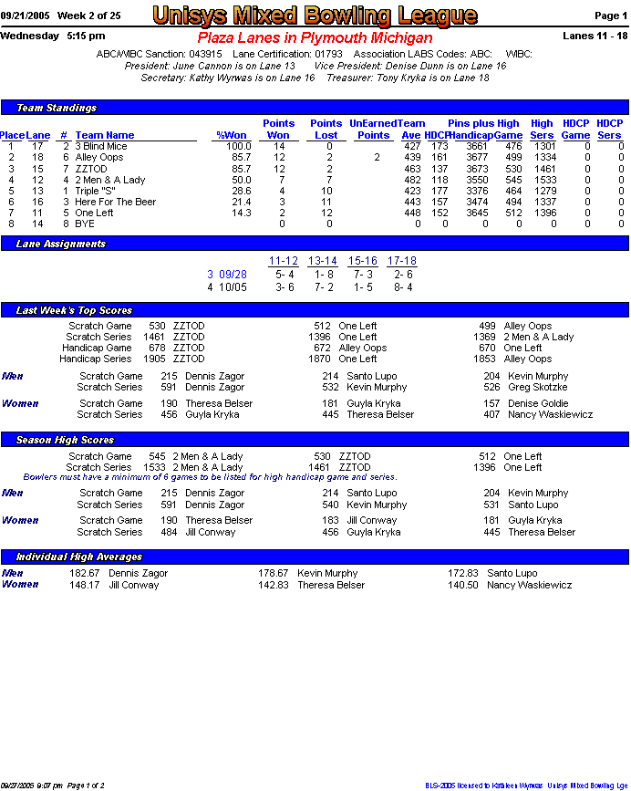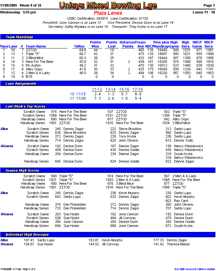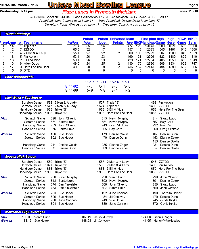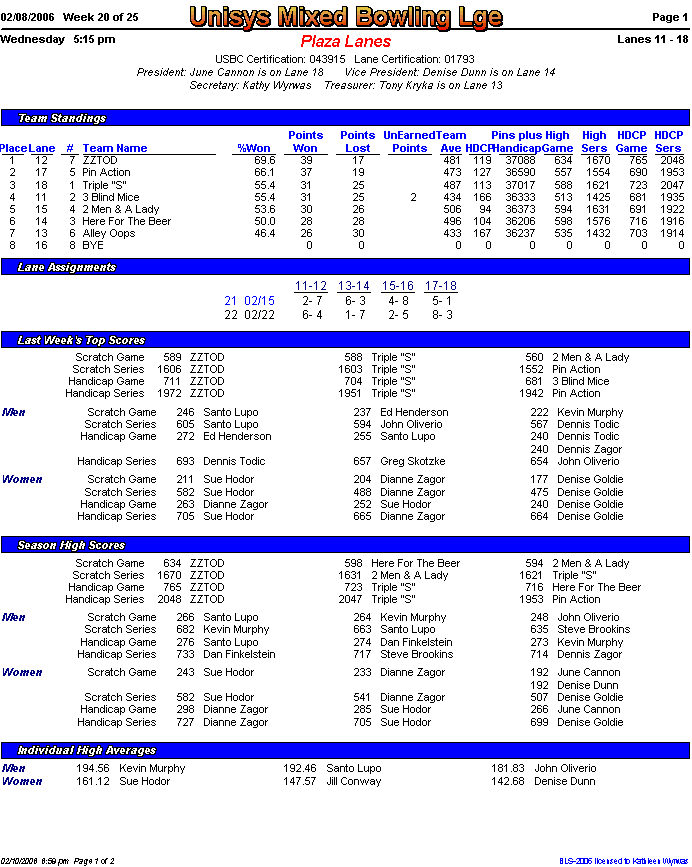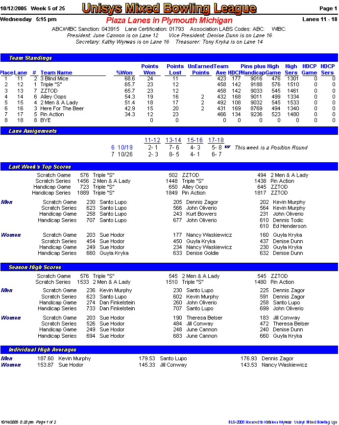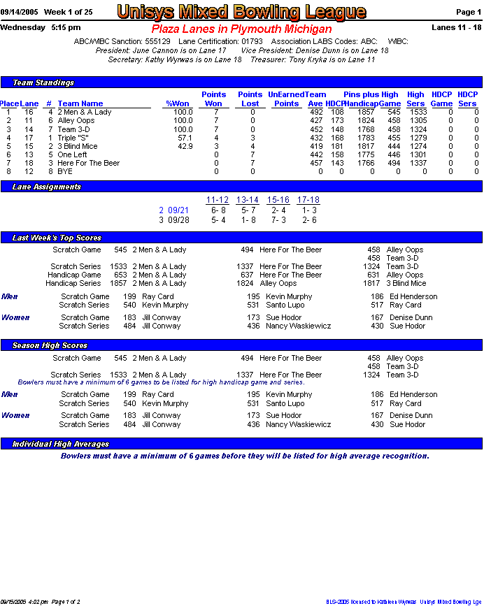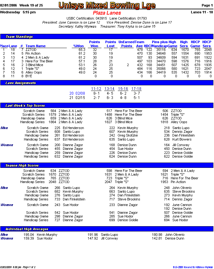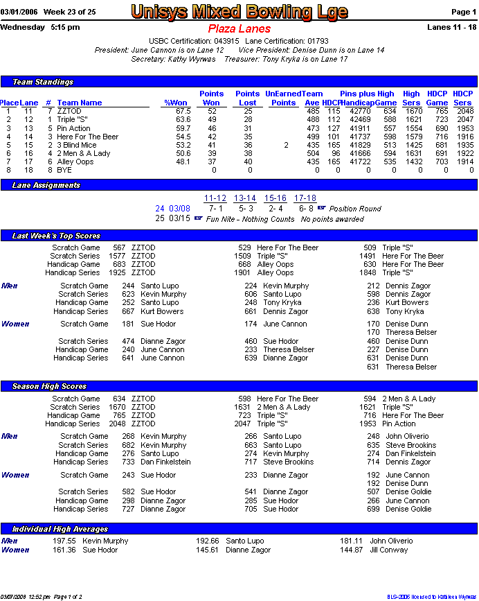 Brackets sheet and lane assignments (PDF file)