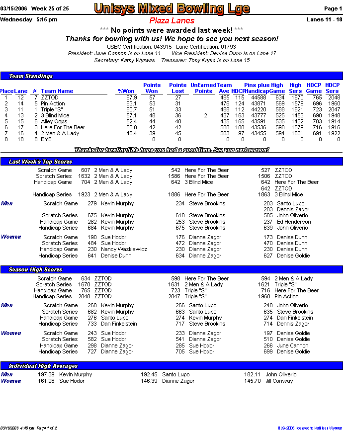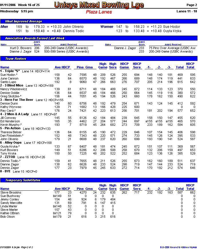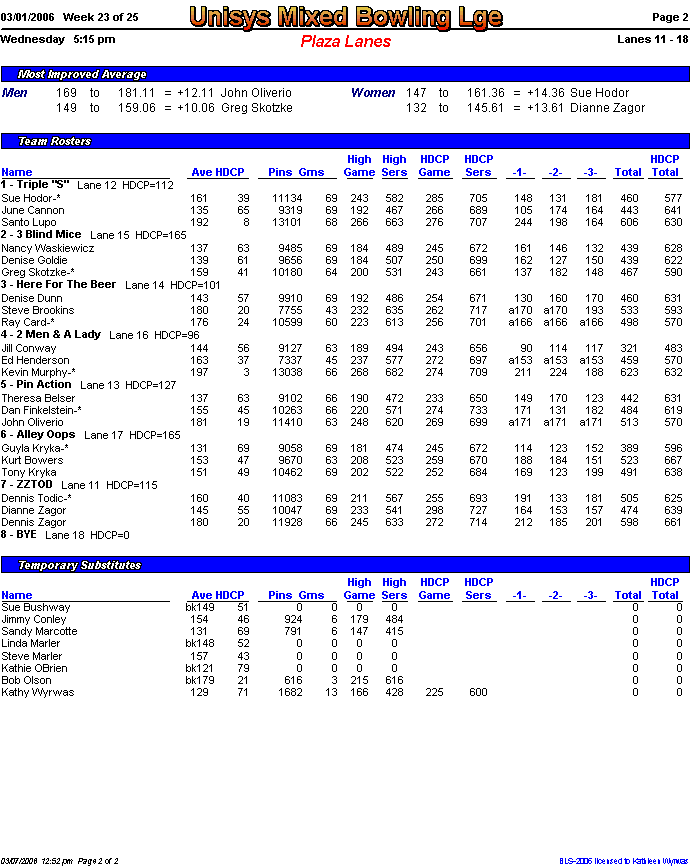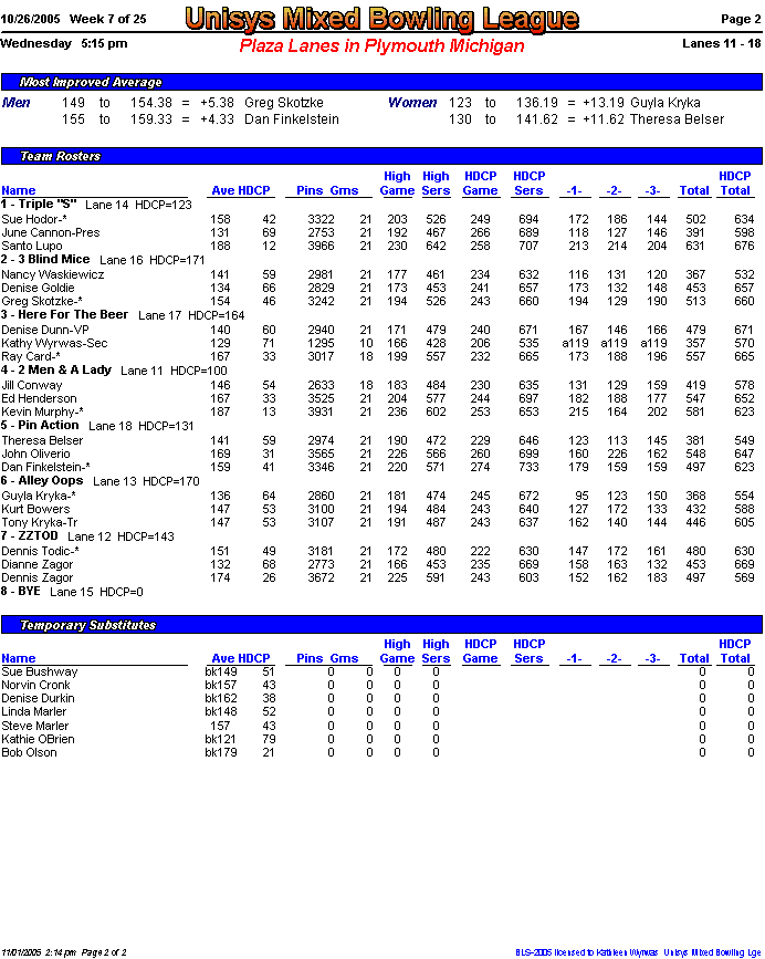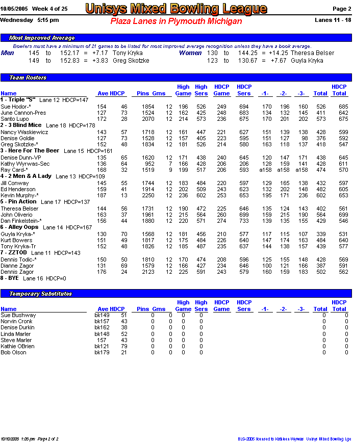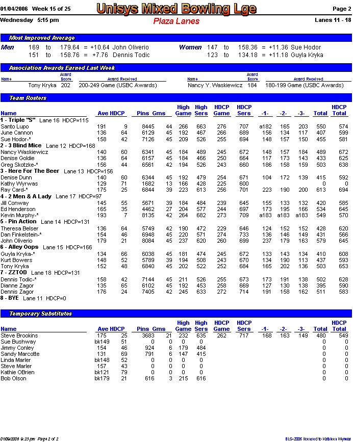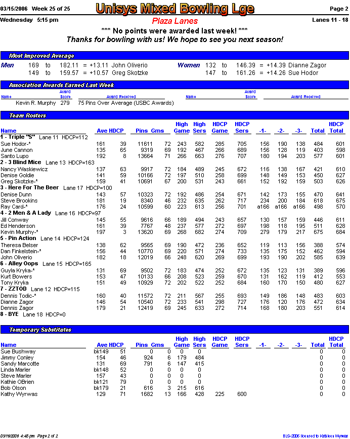 Rolloff between 1st and 2nd half champs. Optional Doubles Tournament for all bowlers.