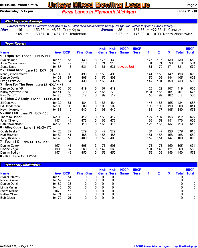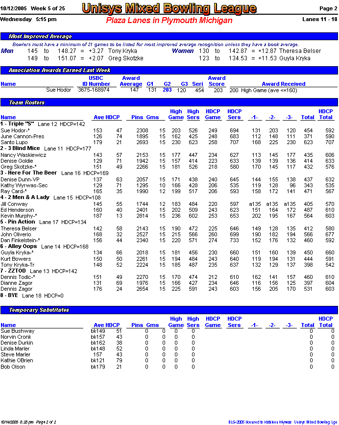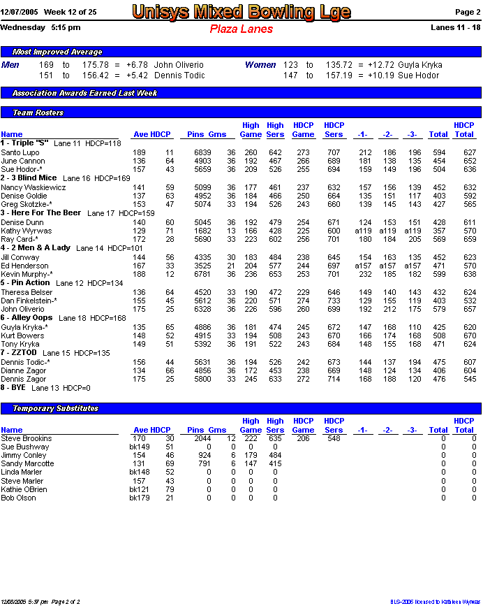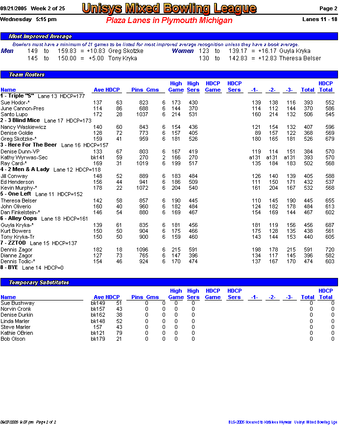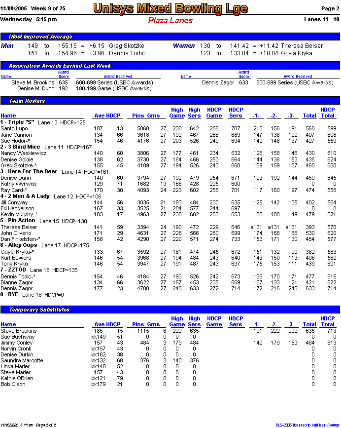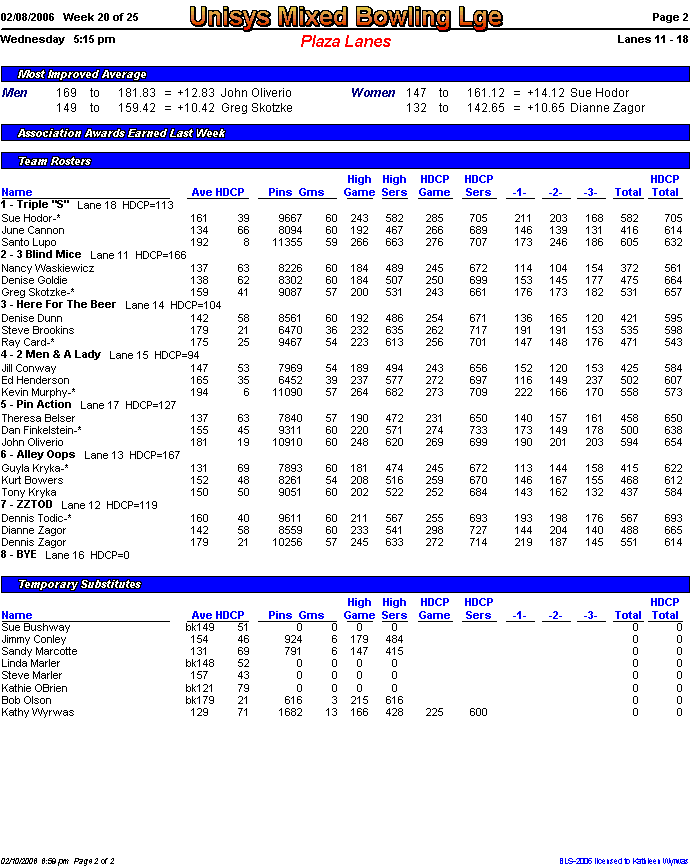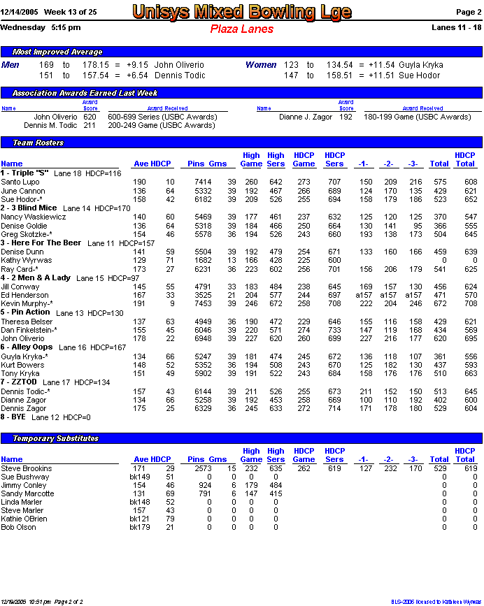 Rolloff between 1st and 2nd half champs. Optional Doubles Tournament for all bowlers.